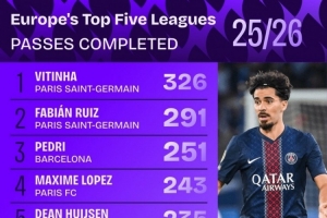下一篇: 本赛季五大联赛成功传球次数榜:维蒂尼亚、法比安、佩德里前三