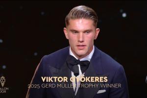 体育资讯09月23日讯 2025年金球奖颁奖典礼今日进行,约克雷斯获得今年盖德·穆勒奖。