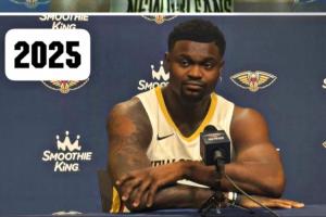 鹈鹕球星锡安现身媒体日,脸上棱角分明,连下巴都尖了。