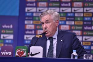 体育资讯10月9日讯 巴西国家队主教练安切洛蒂出席了对阵韩国队赛前的的新闻发布会,确认了门将位置的安排,并谈到了球队的备战情况、亚洲对手以及以皇马球员为班底等话题。